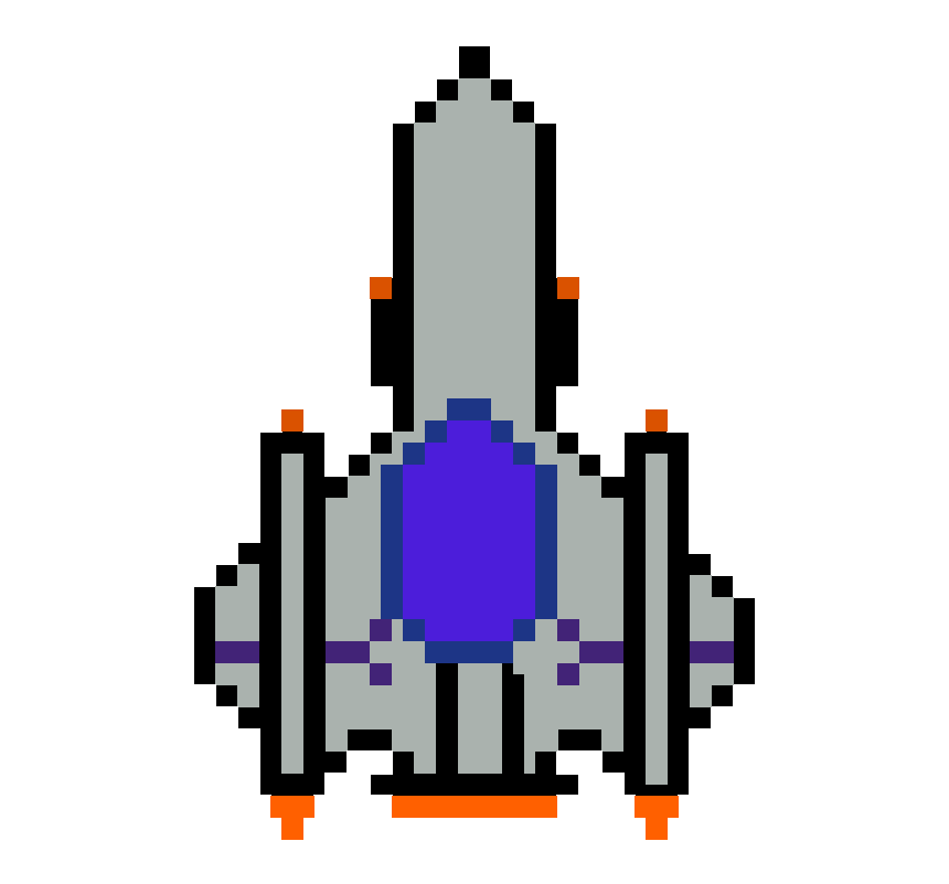 Also, I used some other colours on this pixel art to highlight those particular parts of the spaceship such as I used a bright orange to highlight the flames that are coming from the exhaust of the spaceship and the reason this stands out against the rest of the ship is due to compared to rest of the ship that used darker colours as the main colour scheme of the ship is a dark grey so due to this colour being brighter than the rest it stands out because of it.
