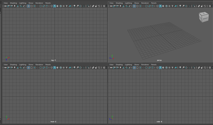 However, there are 3 more different perspectives in Maya which are front, side, and top perspectives and by pressing space on your keyboard it will show all these views on your screen as separate viewports as you can see in the image below.