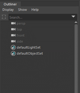 The Outliner is an important part of the Maya interface because it will display everything that is currently in your scene onto a list from this list you will be able to select, edit hide or delete anything that is currently placed into your scene also it allows you to rename anything from here so you can give any object a name so you know what object that is in your scene.