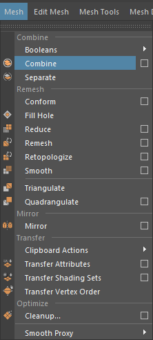 Before I can connect the handle to the cylinder, I need to combine the two objects together and to do this I will go to the outliner and then I can shift-click on both shapes then I will go to the top of the user inference and select on the mesh tab then from there will click on the option that says combine and this will combine the shapes together.