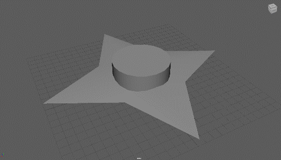 Now that I have merged all the vertices together you can see that the shape looks more like a shuriken now all I need to do is put a hole in the middle of the shuriken and it will be complete and to do that I will create a cylinder and I need to make it large enough so it can cut threw the shape of the shuriken and to do this I will use the channel box to manually change the size of the cylinder so it will be large enough.