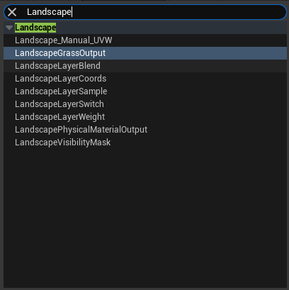 Instead of just plugging the textures directly into the nodes for the material and I am going to create a layer blend node, as this will allow me to paint onto my landscape and allow me to edit it more to my liking so I can get the appearance exactly how I want it to look and to do this right click anywhere in the material editor and new window will appear which you can search for any type of node in and in this case I can search landscape, and it will come up with layer blend node.