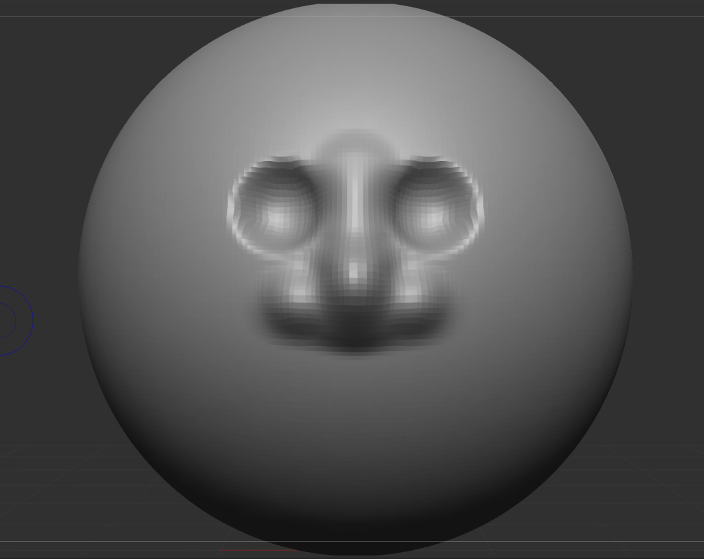 Also, I will do the opposite for the nose as I want to add volume to the sphere as noses tend to stick out somewhat on a face. I will put the nose in between where the eyes are, and you can see what it looks like below. However, at first, I thought the nose was too small, so I adjusted it until I was happy with it.