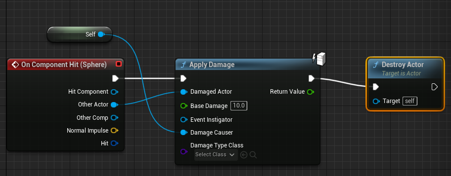 Then I set up the blueprint for shooting the bullet so that when the player presses the left mouse button or the right trigger on the controller, it will shoot the bullet in the direction they are facing. Lastly, I returned to the bullet blueprint to make it do 10 damage to any other players when it hits them.