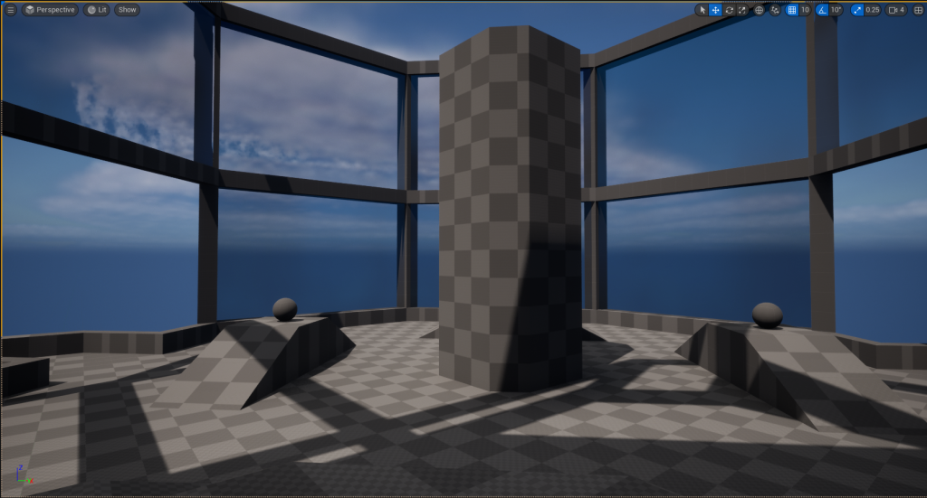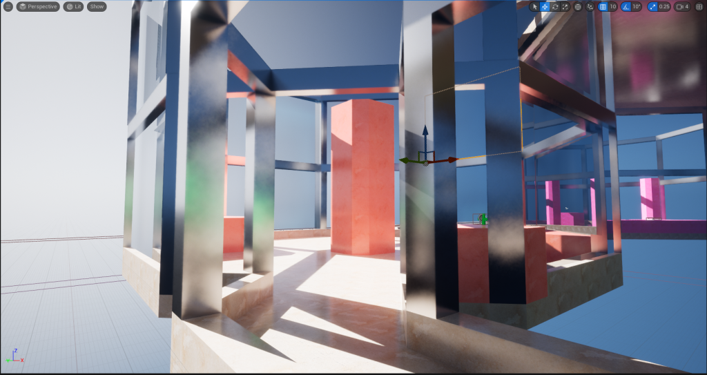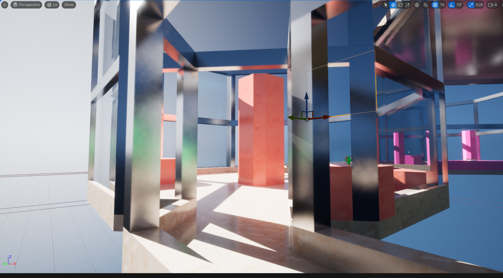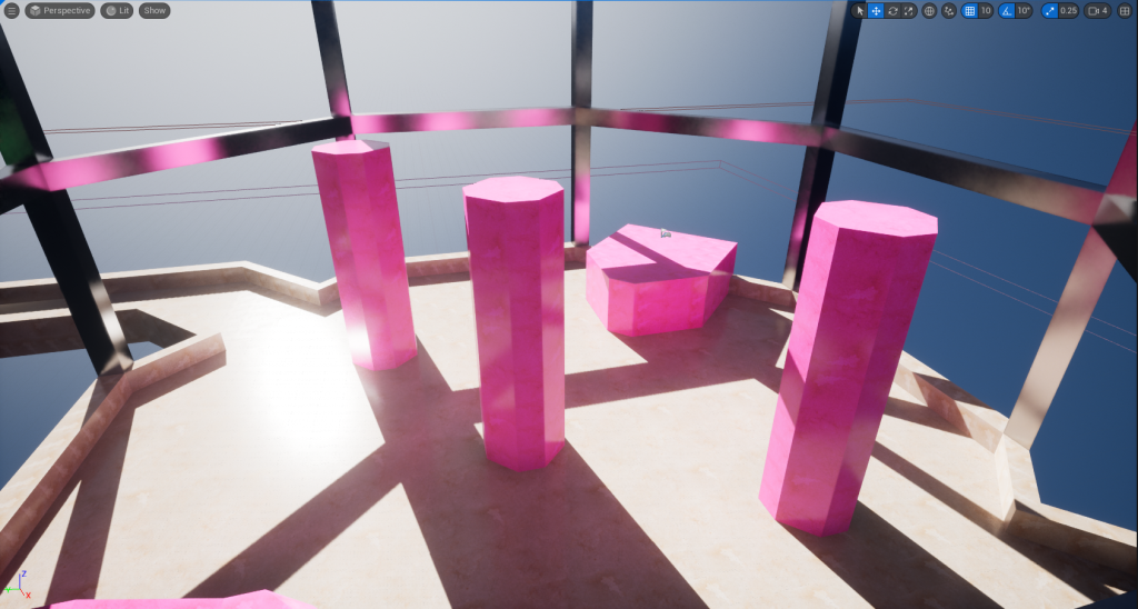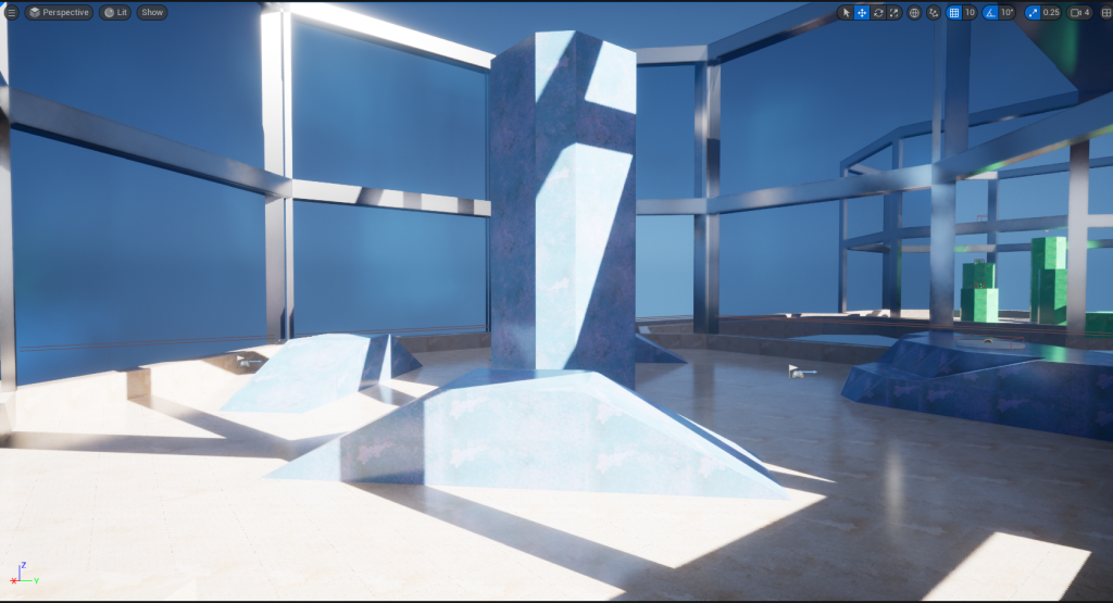 The level that we created needed to be textured and since this level was going to an aquarium on the outside there would be props and a wave effect to make it look like there is water outside but for now, I focused on the inside of the aquarium, and we decided as a group to make the floor marble and the support beams an iron texture.