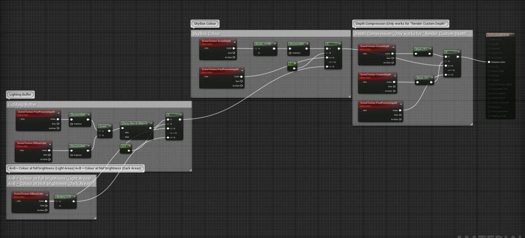 For the arena shooter, I was thinking of what art style the game should have since you’re playing as cats I was thinking it would be more child friendly so I thought a cel-shaded art style would fit the game well so I created a post-process material that would be applied to create this effect and by using a render custom depth that means it would only be applied to an object that I want it to be instead of everything. However, it didn’t end up being used in the final level as it made some objects too bright.