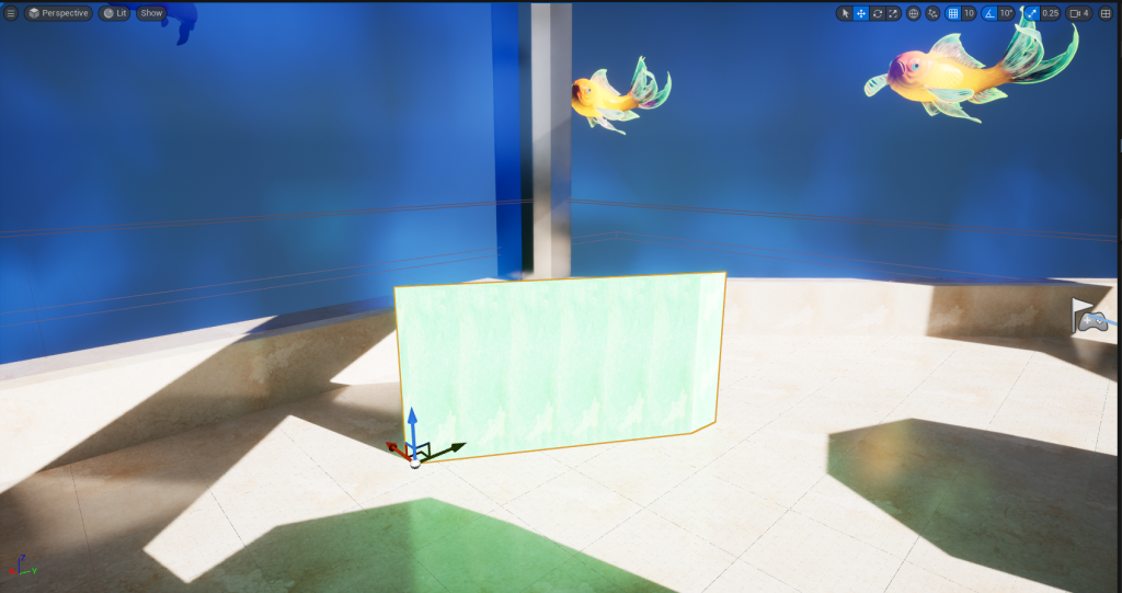 Lastly, I decided to add some fish behind the glass where the water would be and I placed them all around the level.