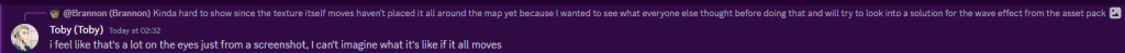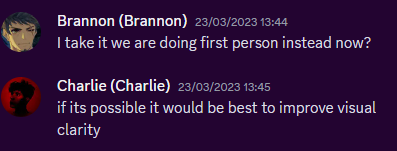 Throughout working on the project we had meetings on Discord to discuss how well things were going, what we wanted to do next etc, and during one of them we decided to change the game from a third-person arena shooter as most of the group felt that it would improve the general flow of the game and visual clarity. It was a simple change to add all I did was move the player camera instead of the player model then now it’s first person.