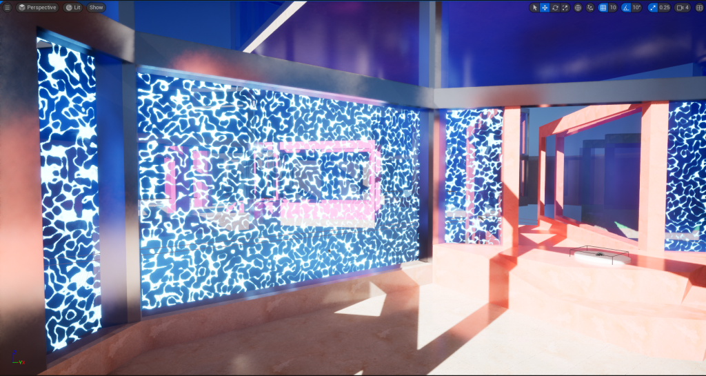 Originally, I was going to use the water texture that Marshall made and put it behind the glass to make it look like moving water however when showing this to some of my group they felt it was too much on the eyes, so I decided to remove it.