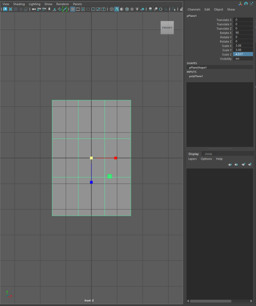 Firstly, I added a plane into the project, which would be used as the base to form the shape of the shield, so I rotated it by 90 degrees as, by default, it would be flat on the ground which wouldn’t work for my shield and then I adjusted the scale of it to make it a lot larger in size so now I just have a rectangle that I can work on to make the shape of the shield.