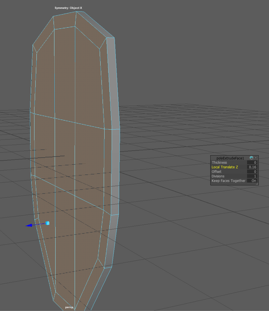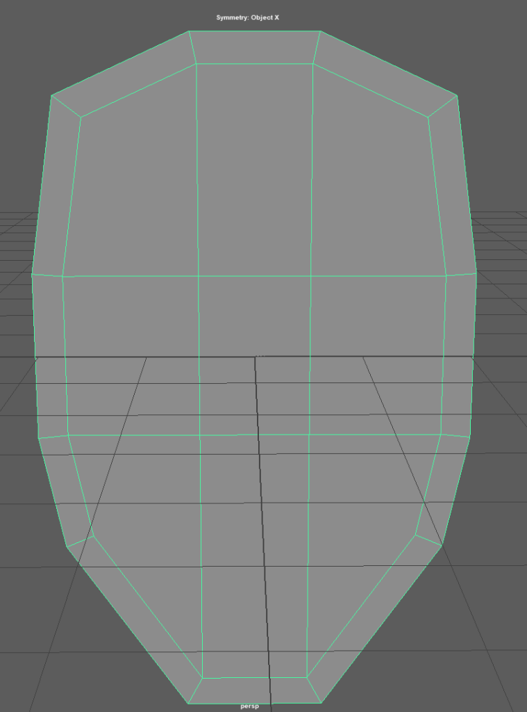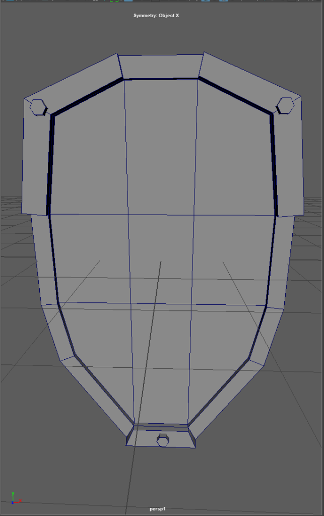 To adjust the shape of the rectangle, I put it into vertex mode as by doing this, I could adjust each vertices on the object so it can form into the shape that I want it to be, and I turned on symmetry so the changes would be affected on both sides and to move the vertices I needed to switch to the move tool while in this mode then at the first I moved the top vertices and continued this process until I got a base shape of the shield that I was happy with.