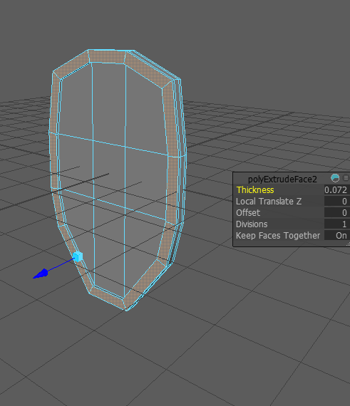 Now, I will switch to edge mode, which allows you to select the edges of your object so you can adjust them to your liking then I select all the edges of the shield then use the extrude tool to make the shape of the rim by giving it an offset of 0.278.