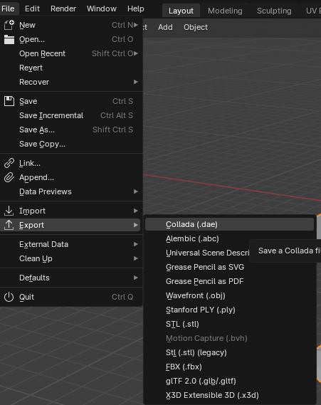 Firstly, to import my 3D models I needed to convert them to the .glb file as this the file format that FrameVR supports so in blender I went to the export tab then set as .glb file however when importing them into FrameVR only half of the model would be appear.
