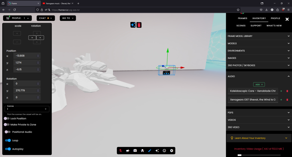 Also in edit mode you can make the audio positional so this means it will only start to play where you walk into that area where you placed the audio in your scene and you make it loop so it plays forever or set it to autoplay so it automically starts playing.