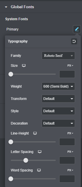 Another thing you can change in site settings are the colours used on your website and the font that will be used by your pages and by changing them here it will affect any other page you make in Elementor so everything will have a consistent look to it.