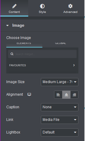 To add images it’s similar to how you add text you just drag the image widget onto your page and a new window will open on the left your screen allowing you to select the image you want to use and adjust some settings such as the alignment of your image and if you want your image to be able to link to a media file this means when a user clicks on a image it will open the full image.